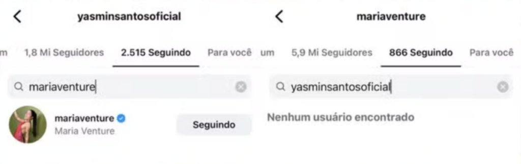 No entanto, ainda corroborando para que o fim do noivado realmente tenha ocorrido, Maria deixou de seguir a ex-noiva, Yasmin Santos, em suas redes sociais. Horas depois de publicar mensagens que mostravam o agravamento da crise entre as duas, a influenciadora deixou de seguir a cantora, movimento que os internautas notaram rapidamente nas redes sociais.