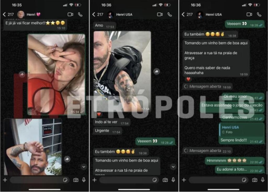 No entanto, ao longo da conversa revelada pela coluna, Henri enviou mensagens como: “Indo aí te ver urgente” e “Atravessar a rua tá na praia de graça. Quero mais saber de nada”. Larissa respondeu com elogios como “Sempre lindo” e reagiu com entusiasmo a uma imagem recebida: “Adorei a foto”.