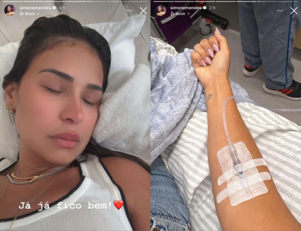 Simone também explicou que Kaká Diniz, seu marido, a acompanhou durante o atendimento. “Que situação. E agora estou esperando o Kaká tomar um banho para me levar para dar uma animada na vida.Mas vou te falar, ô negócio pra deixar a gente sem energia, fraca, um desconforto, meu Deus. Vamos lá, se cuidar. Já já fico bem”, disse ela.