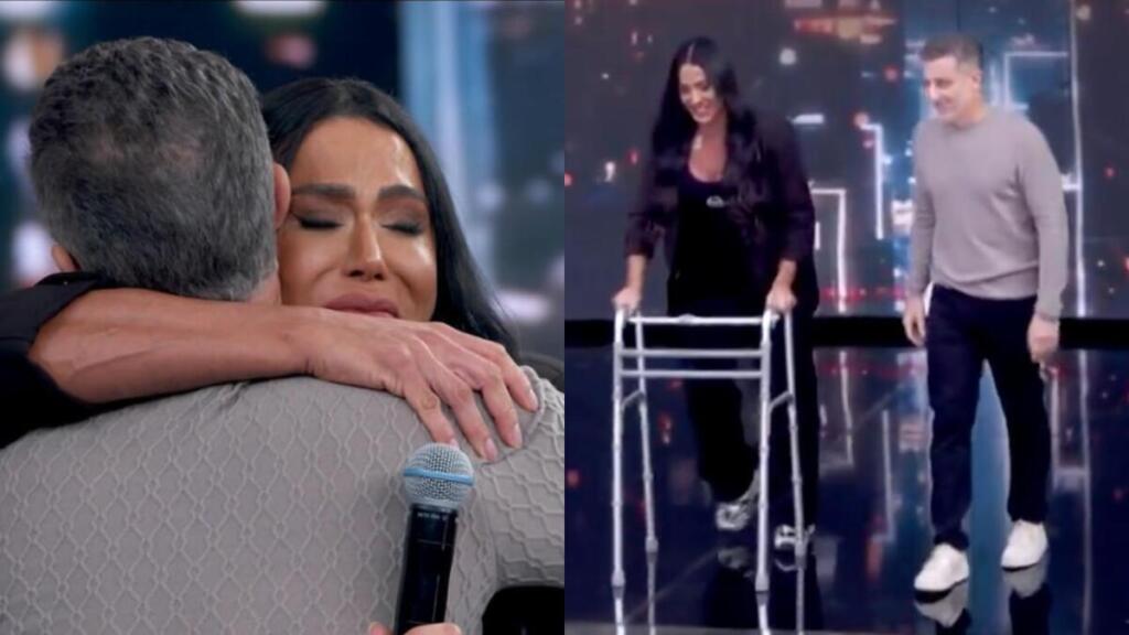 Gracyanne Barbosa voltou ao palco do Domingão com Huck usando um andador, após se afastar da Dança dos Famosos por causa de uma séria lesão.
