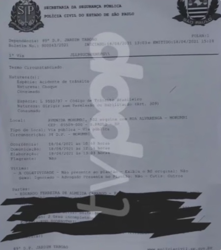 O processo envolve Roseli Fontes Fernandes Rodrigues e Lucas Antonio Severino, que acusam Dudu de provocar um acidente de carro em dezembro de 2021. O veículo do apresentador bateu em um táxi conduzido por Lucas e pertencente a Roseli. Conforme o processo, Dudu prometeu arcar com os prejuízos, mas desapareceu logo depois. Por causa disso, o casal entrou com um pedido de indenização de R$ 20 mil.