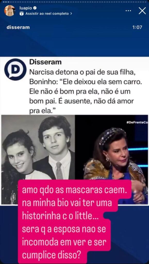 Logo em seguida, Luana reforçou o tom de mistério e alfinetada. “Amo quando as máscaras caem. Na minha bio vai ter uma historinha com o Little… [Boninho] Será que a esposa [Ana Furtado] não se incomoda em ver e ser cúmplice disso?”, questionou, deixando os seguidores curiosos. Sendo assim, a publicação se espalhou rapidamente e virou um dos assuntos mais comentados da noite.