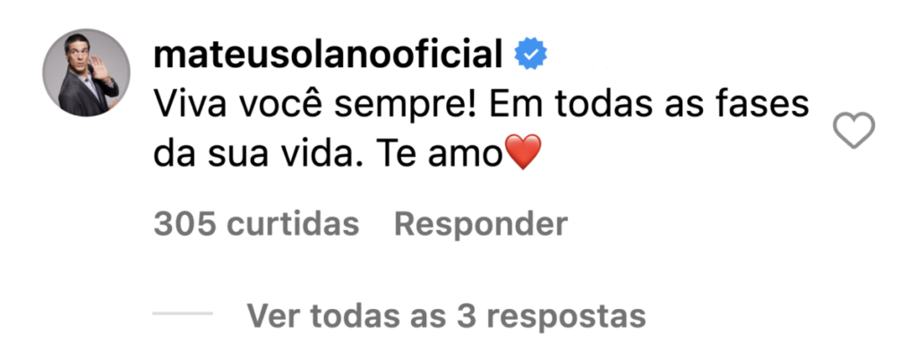 Entretanto, Paula acabou recebendo inúmeras mensagens de seguidores parabenizando-a pelo posicionamento coerente perante a situação. Mas, seu ex-esposo também decidiu comentar na publicação e logo sua atitude acabou repercutindo. O ator deixou claro que ainda cultivam os bons sentimentos, mesmo após o término.