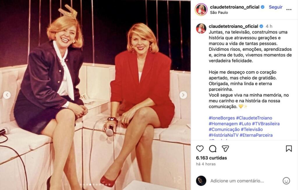 Logo depois da confirmação, Claudete Troiano abriu o coração nas redes sociais e escreveu um texto carregado de afeto. Ela relembrou a parceria que atravessou décadas na televisão e destacou que as duas dividiram risos, aprendizados e momentos que marcaram gerações. Além disso, Claudete agradeceu pela convivência e afirmou que Ione continua viva em sua memória e na história da comunicação.