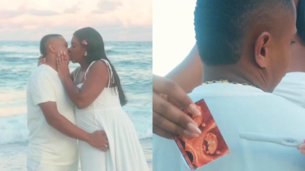 No registro, o casal surge caminhando em uma praia, vestido de branco e em um clima leve e intimista. Em seguida, eles mostram um teste de gravidez positivo e imagens de ultrassom, reforçando a chegada do bebê. “ESTAMOS GRAVIDOSSS”, escreveu na legenda.
