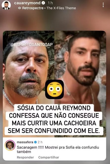 Logo depois, a própria Grazi Massafera decidiu entrar na conversa e reagiu à publicação que mostrava o homem comparado ao ator. A atriz, que foi casada com Cauã entre 2007 e 2013, comentou a imagem de forma irônica e citou a filha do ex-casal. “Sacanagem!!!!! Mostrei pra Sofia, ela confundiu também”, escreveu, aumentando ainda mais a repercussão da postagem entre os internautas.