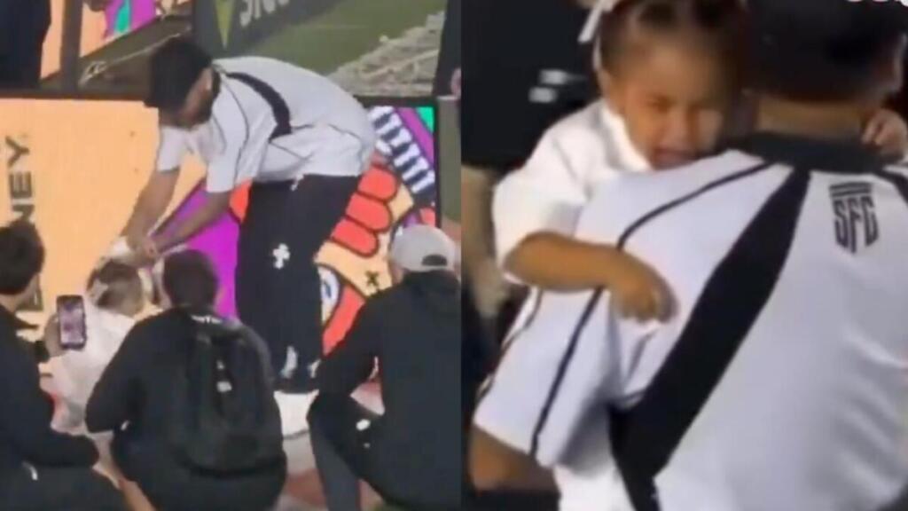 Nas imagens que viralizaram nas redes sociais, a pequena aparece sorridente e fazendo caretas para as câmeras, até o instante em que a bola acerta sua cabeça com força. Mavie cambaleia para o lado, e Neymar reage imediatamente, segurando a filha nos braços e saindo do campo para protegê-la.