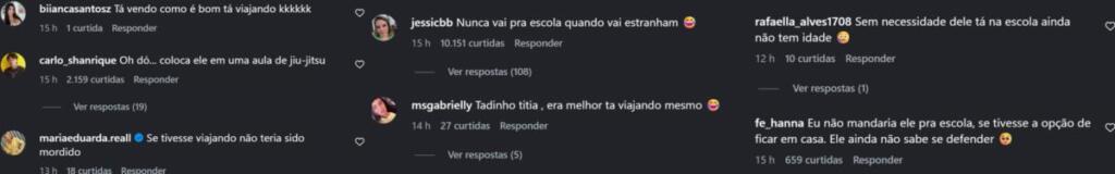 Por outro lado, depois de expor o ocorrido, Virginia enfrentou uma enxurrada de críticas. Muitos seguidores questionaram a escolha de matricular o menino tão cedo, argumentando que, por ser muito bebê, ele não consegue se defender ou reagir em situações como essa. Além disso, alguns internautas ironizaram a influenciadora ao sugerir que o filho não apresentaria hematomas caso estivesse viajando.