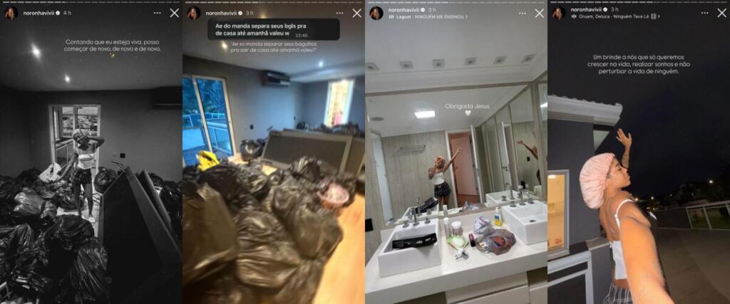 Vivi, no entanto, publicou o print da mensagem enviada por Poze, onde ele disparou: “Só manda separar seus bagulhos pra sair de casa até amanhã, valeu?”. Na sequência, ela mostrou as sacolas e completou com a frase: “Contando que eu esteja viva, posso começar de novo, de novo e de novo”. Em outro momento, a influenciadora posou no espelho de sua nova casa, agradecendo: “Obrigada, Jesus”.