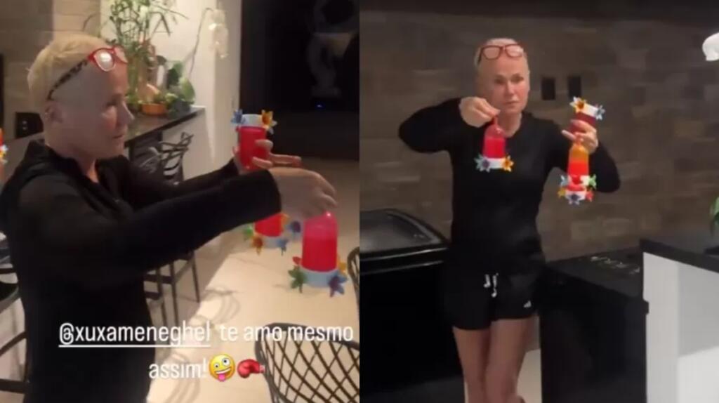 “Olhem os amigos da minha mulher! Xu BatGirl. Te amo mesmo assim”, brincou Junno ao filmar Xuxa colocando frutas em uma bandeja no quintal. No vídeo, os animais sobrevoam o local e chegam a passar bem perto do casal. “Nossa! Rasante na tua cabeça, cara. Olha isso!”, reagiu ele, assustado com a movimentação dos morcegos.