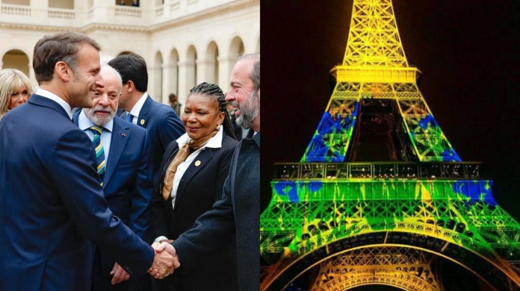 A Torre Eiffel ganhou as cores verde e amarela na noite desta quinta-feira (5/6), em homenagem ao presidente Luiz Inácio Lula da Silva, que cumpre agenda oficial na França. O gesto simbólico foi anunciado pela prefeita de Paris, Anne Hidalgo, durante encontro com Lula e a comunidade brasileira.